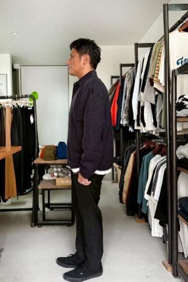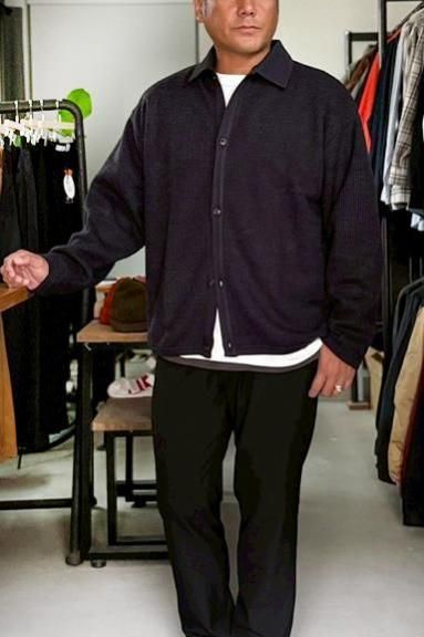 Audience ウールビッグワッフル ニットソー ポロカーディガン オーディエンス Black